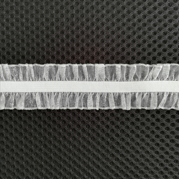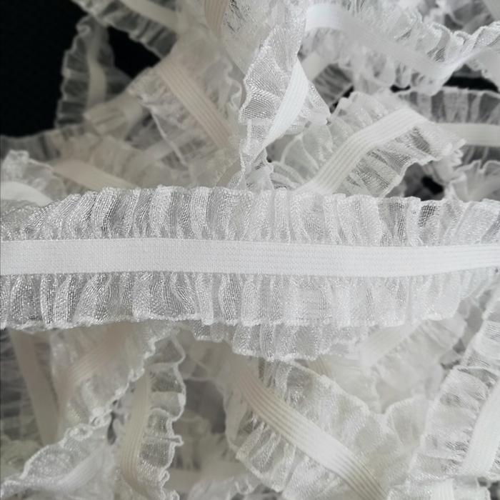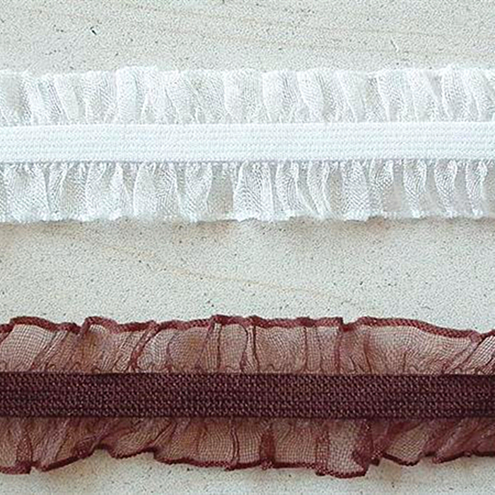 ruffled edges, lace style, woven structure, good stretch, large elongation, custom colors with good fastness