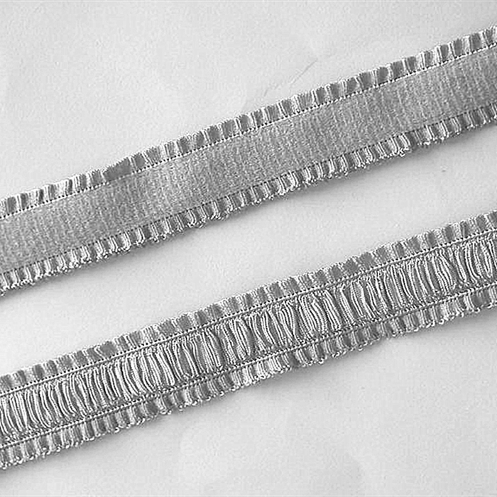 ruched edges, woven structure, good stretch, large elongation, custom colors with good fastness